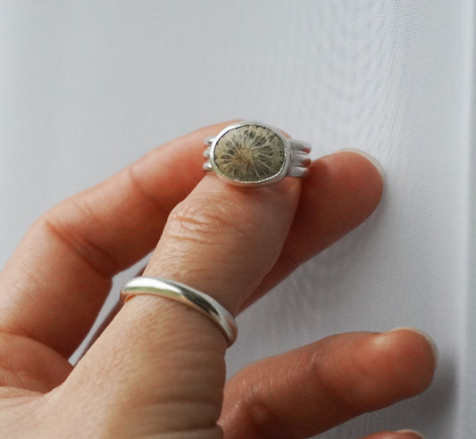 Fossilised coral chunky sterling silver ring | Size L | Ready to ship